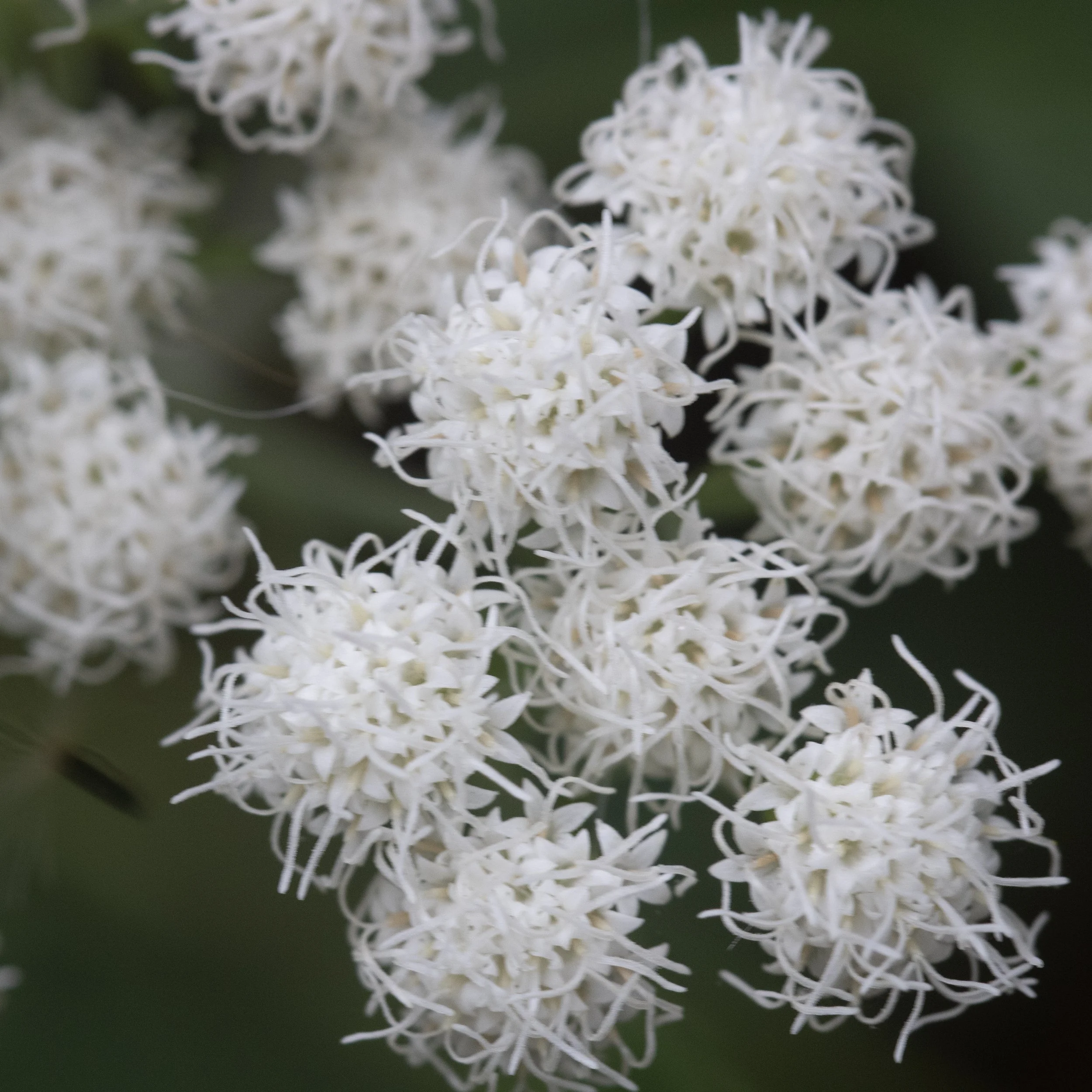 Ageratina altissima (White Snakeroot) is a clump-forming, spreading, herbaceous perennial boasting flat-topped clusters of small, fluffy, bright white flowers in summer and fall. Borne atop erect, strong branching stems, the long-lasting blossoms are attractive to bees, butterflies and moths in search of nectar. Long-stalked, sharp-toothed, gray-green, nettle like leaves, 3-6 in. long (7-15 cm), are paired along the stems. Native to North America, White Snakeroot provides a wonderful garden presence and late season flowers at a time when choices may be limited. Use it in the informal setting of a cottage garden or allow it to naturalize in a woodland garden. (Source: https://www.gardenia.net/plant/ageratina-altissima)